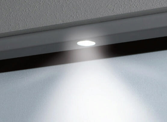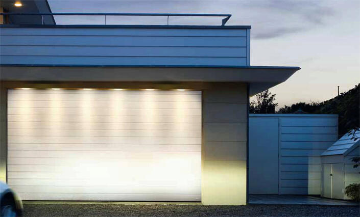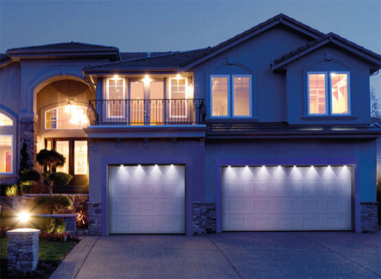 Um Ihr Garagentor auch nach Sonnenuntergang ins rechte Licht zu rücken – und nebenbei Unbefugte fernzuhalten –, empfiehlt sich das neue LED-Beleuchtungs-Kit. Es tritt in spannenden Dialog mit anderen Lichtquellen, z. B. beleuchteten Fenstern, und setzt so die Gesamtarchitektur Ihres Hauses stimmungsvoll in Szene. Das Beleuchtungs-Kit besteht je nach Torbreite aus vier, sechs oder acht LEDs, die auf einer U-förmigen Schiene gleichmäßig über die gesamte Torbreite verteilt sind. Die Steuerung erfolgt wahlweise über den Handsender, mit dem Sie auch Ihren Antrieb bedienen, über eine separate Zeitschaltung oder einen Bewegungsmelder.
